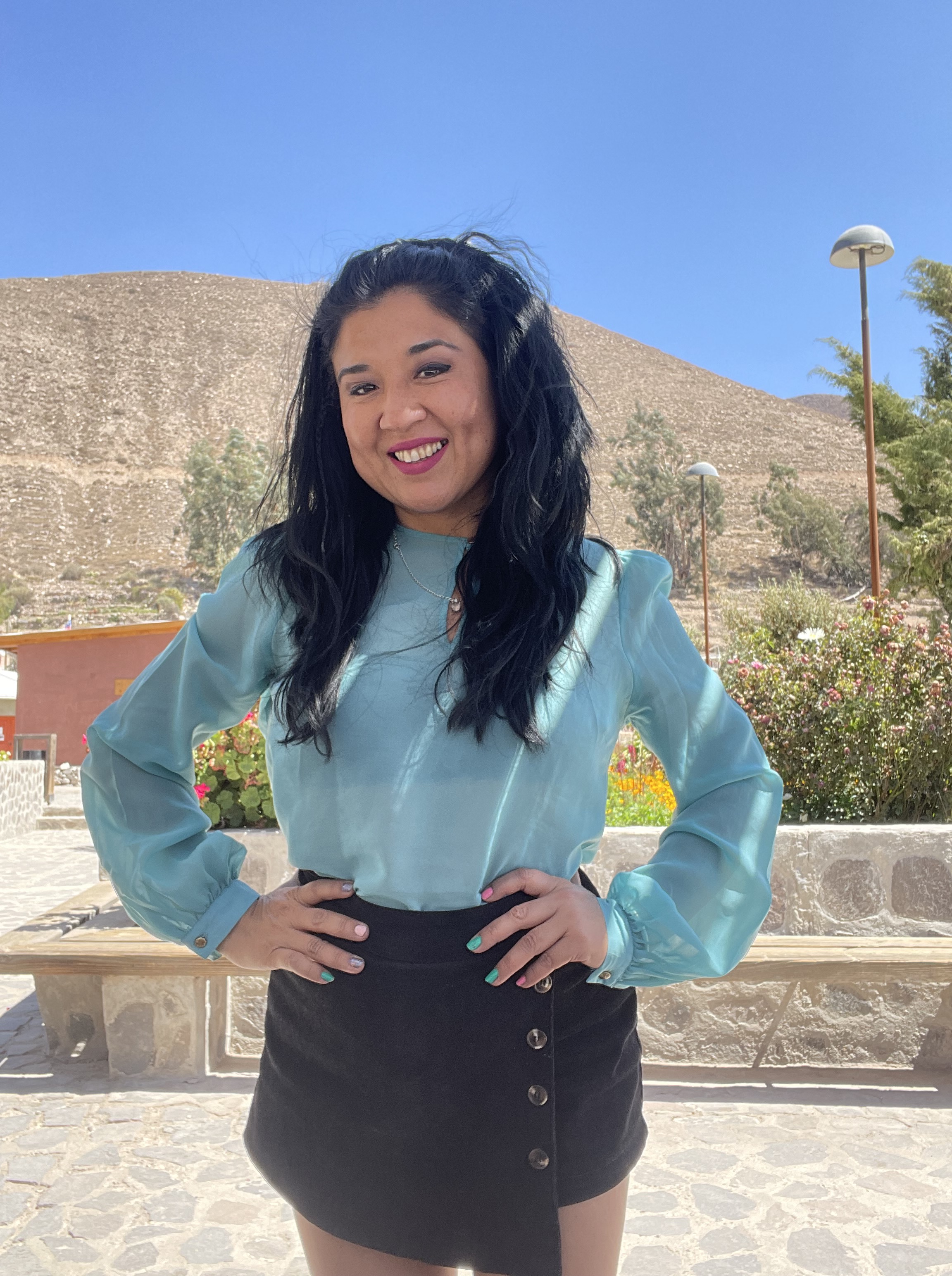Soy descendiente andina, es parte de mi identidad, consciente de la naturaleza de mis orígenes, fui construyendo bienestar personal, social y económico a través la gestión de proyectos, como agente de gestor de cambio la gestión de proyectos en el área cultural y patrimonio fue algo que desarrollé desde muy joven. Con la experiencia de vivir en Europa reafirmé el concepto de diseñar tu propio camino, encontrar y crear nuevas oportunidades. Como una mujer jefa de familia puedo entender el gran desafío de la crianza, el trabajo, liderar equipos y saber gestionar el tiempo. La resiliencia y el poder que ejerce la fuerza de creer en ti misma y por supuesto el amor que mueve tu mundo interior, con el único propósito que a tu hijo no le falte nada y por ende la conciencia del esfuerzo de mujeres que están en similar situación. Esa fuerza corre en mis venas y me motiva a ser ese agente que provoque el cambio que quiero ver para el beneficio de todas las familias de la Región de Arica y Parinacota Chile.